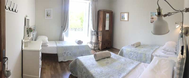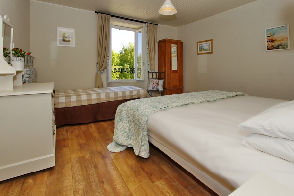 Upstairs there are three good sized bedrooms, one is en-suite. Depending on the size of the party, a second room can become en-suite. The pretty bedrooms have comfortable quality mattresses.